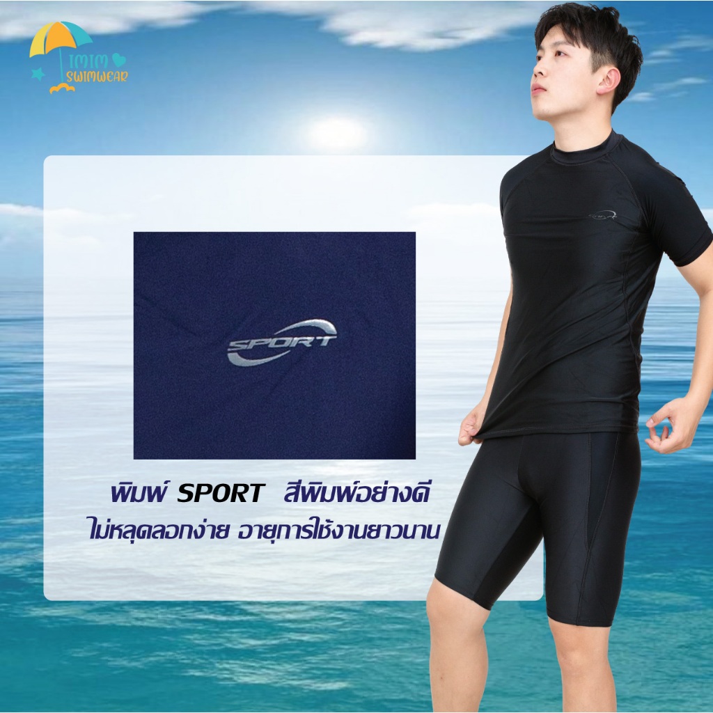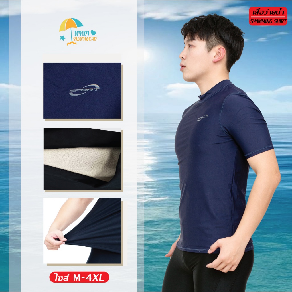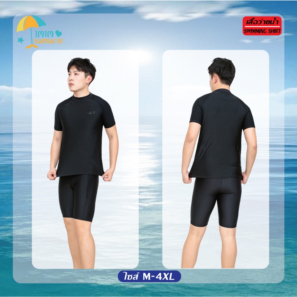เสื้อว่ายน้ำผู้ชายทรงแขนสั้นมีซับในแต่งพื้นสี รุ่น91630