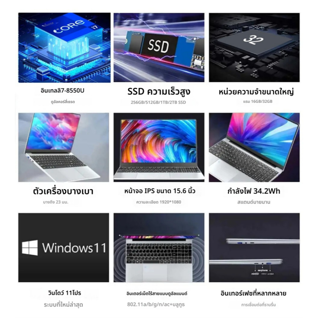 2026 Lenvo ยี่ห้อใหม่ Intel Core i7-8550U 32G RAM 1TB/2TB SSD เกมสํานักงาน HD 15.6 นิ้วแล็ปท็อปสํานักงาน แล็ปท็อป