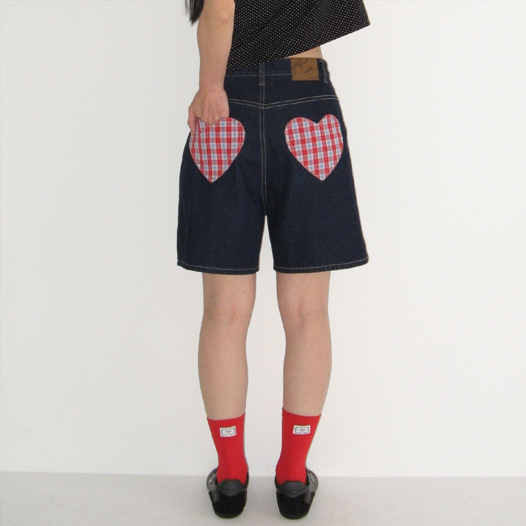 [RONRON] Check Heart Pocket Denim Shorts Pants / 2colors