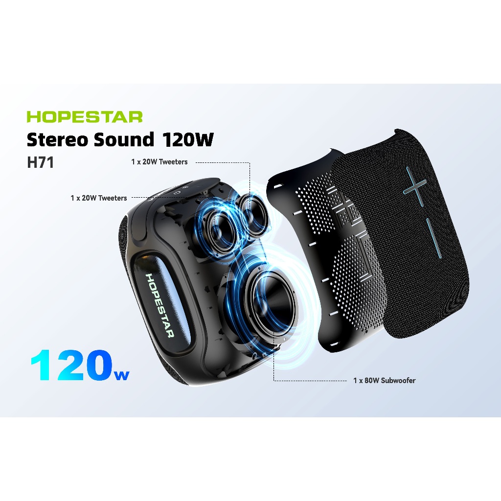 Hopestar H71 ลำโพงบลูทูธ 120 วัตต์ ลำโพง3 ดอก ปรับเบสได้ 3โหมด พร้อมไฟRGB ฟังก์ชั่นลิ้งค์ไม่จำกัด