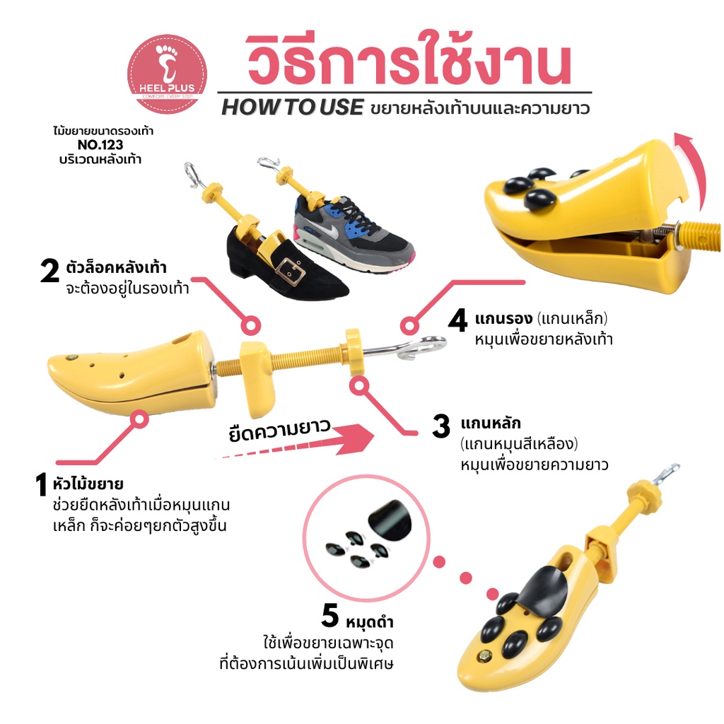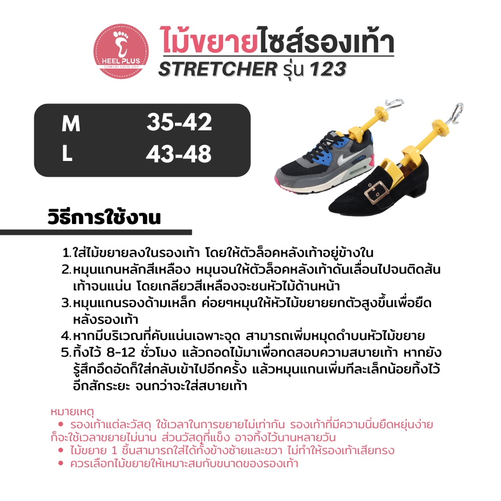 🔆 ส่งฟรี 🔆 Heelplus ไม้ขยายขนาดรองเท้า ขยายหลังเท้าบีบ กดทับ No.123 (แถมฟรี! เม็ดปุ่มดำ)