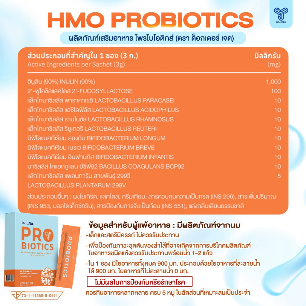 HMO PROBIOTIC โพรไบโอติกส์หมอเจด จุลินทรีย์ 9 สายพันธุ์ สำหรับทานต่อเนื่อง 1 เดือน