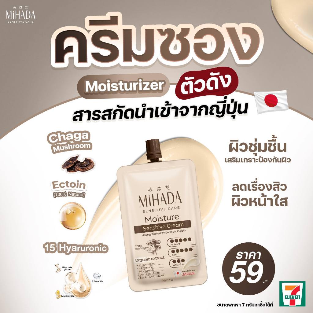 (ของแท้+พร้อมส่ง) 🍄🟫มอยซ์เห็ดมิฮาดะ มอยเจอร์ไรเซอร์ MiHADA Moisturizer Sensitive Cream ขนาด 7 กรัม