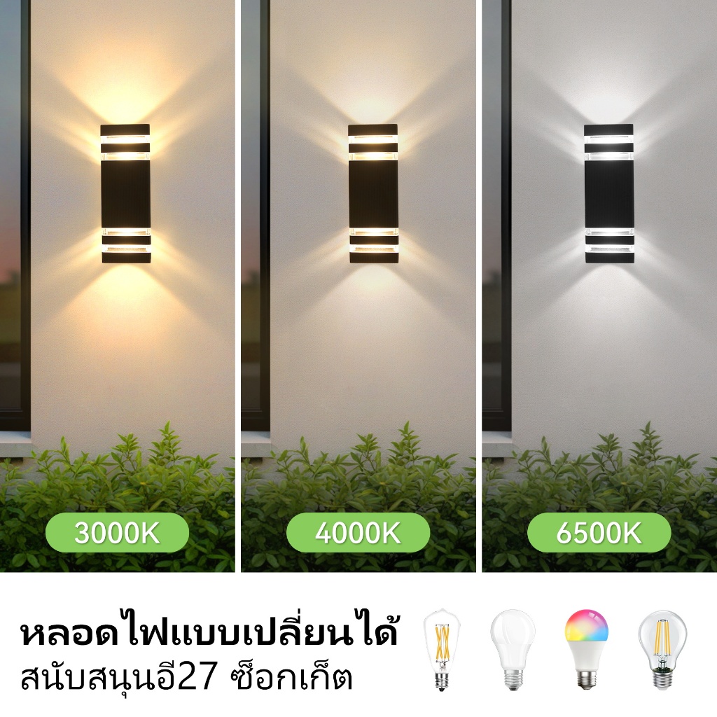 โคมไฟติดผนัง LED E27 ไฟเซนเซอร์ IP68 โคมไฟติดผนังภายนอก ไฟอัตโนมัติ ไฟติดผนัง ไฟทางเดิน ไฟแต่งสวน