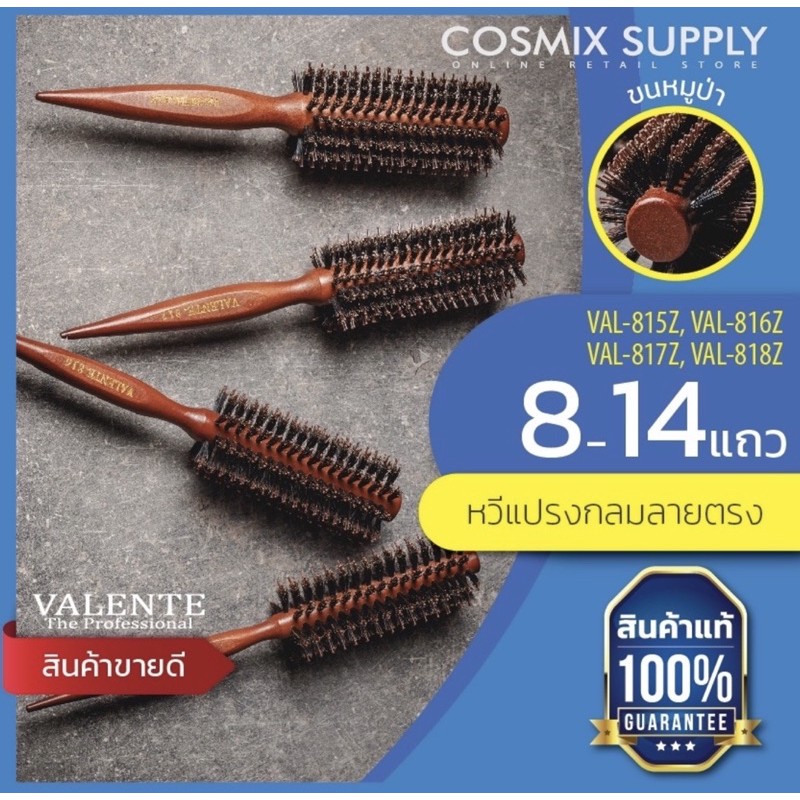 VALENTE หวี แปรง ไดร์ กลม ลายตรง4 ขนาด