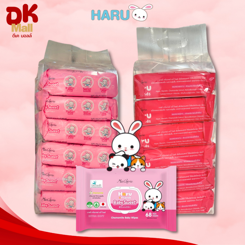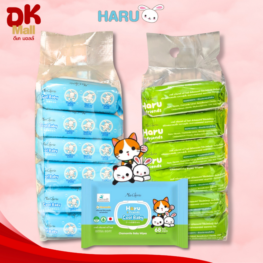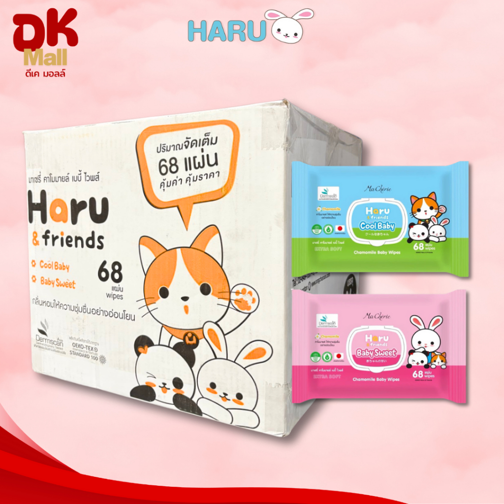 (live) [ ยกลัง 36 ห่อ ] ทิชชู่เปียก Haru & Friends (ฮารุและเพื่อน) สูตรคาโมมายล์ มี 2 กลิ่นให้เลือก ขนาด 68 แผ่น