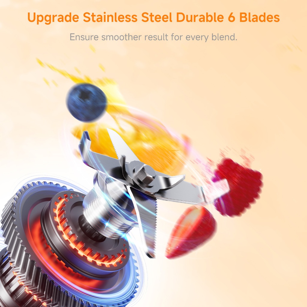 เครื่องปั่นมืออาชีพ BioloMix 1500W พร้อมโถปลอดสาร BPA 2.6 ลิตร พร้อมใบมีด 6 ใบ โปรแกรมรีเซ็ต 7 โปรแกรมสําหรับสมูทตี้, เขย่า, นมถั่ว