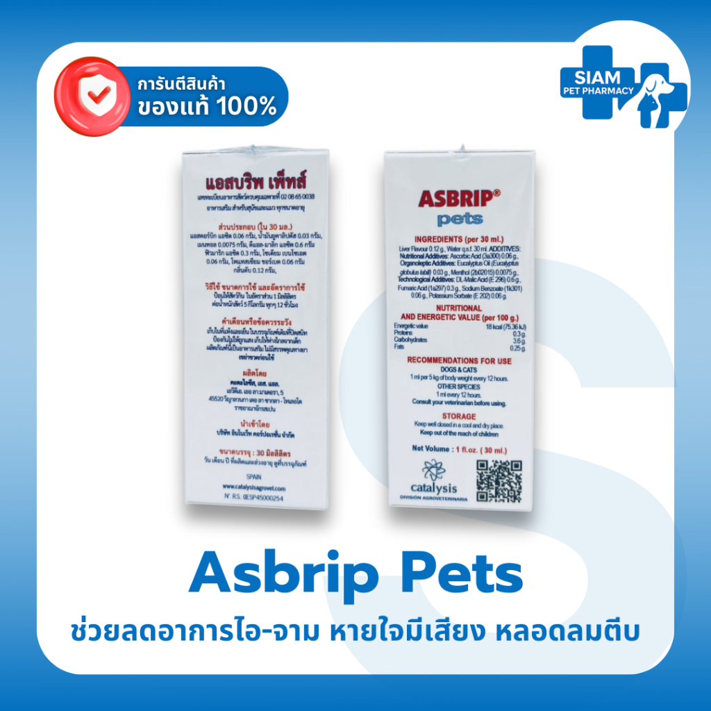 Asbrip Pets แอสบริพ เพ็ทส์ วิตามินทางเดินหายใจแมวหมา ลดไอ จาม หลอดลมตีบ