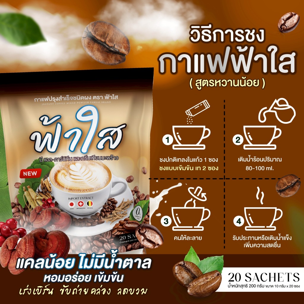 กาแฟ ฟ้าใส Fahsai Coffee ไม่มีน้ำตาล อร่อย ดื่มง่าย 1 ห่อ 20 ซอง