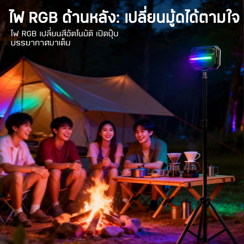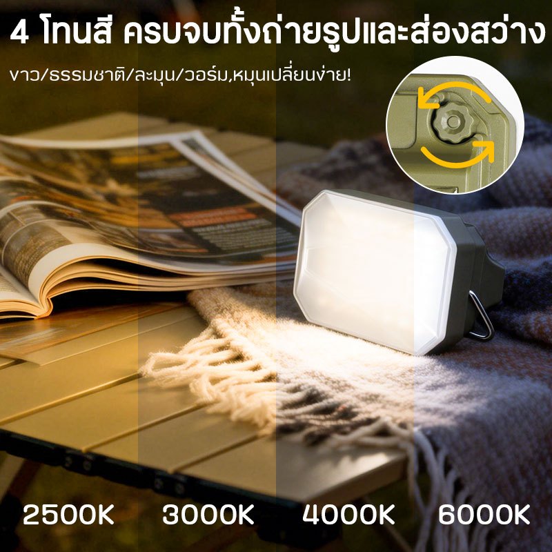 ไฟแคมป์ปิ้ง 850LM แบต 5000mAh ชาร์จได้ ไฟ RGB+แดงไล่ยุง ปรับได้ 4 สี สว่างกว้าง 15ตร.ม.