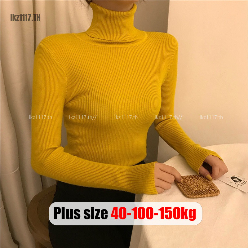 Plus Size✅เสื้อไหมพรมผู้หญิง สาวอวบ ไซส์ ใหญ่ สเวตเตอร์ คอเต่า เข้ารูป สีพื้น เกาหลี แฟชั่น Oversize พลัสไซส์ สาว อวบอ้วน ใส่ได้