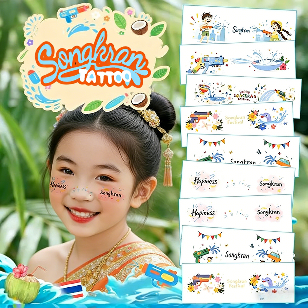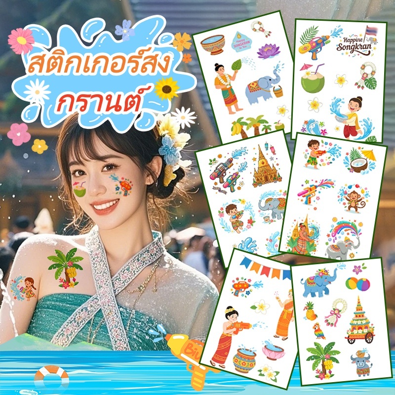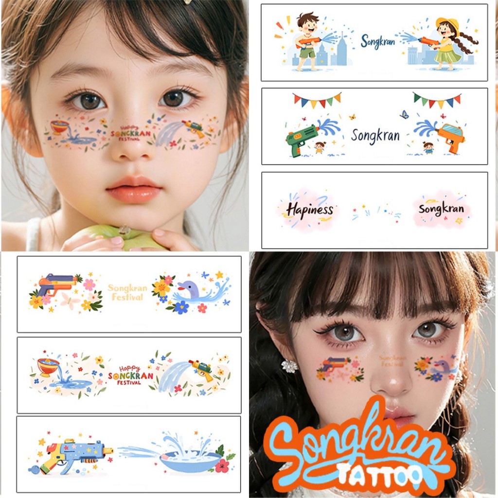 สติกเกอร์น่ารักเทศกาลสงกรานต์ แต่งหน้า สติกเกอร์แต่งหน้าสุดครีเอทีฟ สติกเกอร์แก้ม สติกเกอร์รอยสักบนใบหน้าสำหรับผู้หญิง