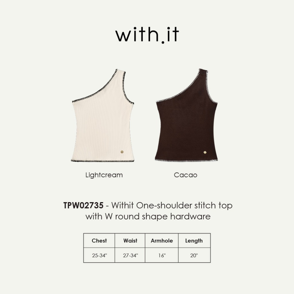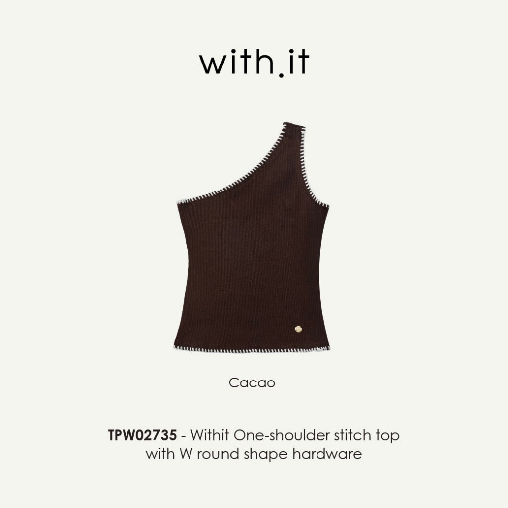 Withit One-shoulder stitch top with W round shape hardware เสื้อปาดไหล่แขนกุดปักขอบ - TPW02735