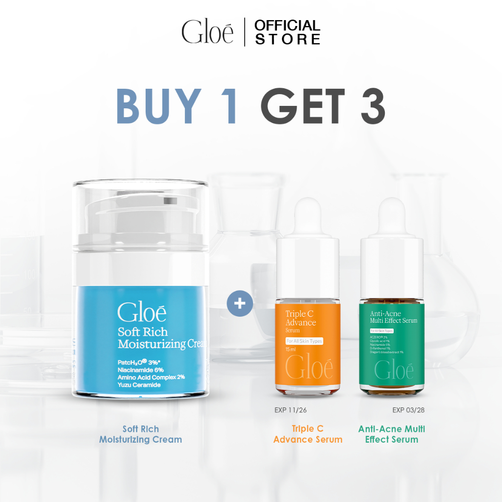 SET 3 ชิ้น เซ็ทฟื้นผิวข้ามคืน มอยซ์โกลว์ มอยซ์พักผิว Gloé Soft Rich Moisturizing Cream 50g