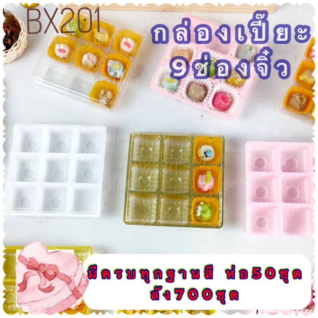 มาวินช้อป กล่องช๊อกโกแลตจิ๋ว 9 ช่องรุ่นวิน+ฝา / ฐานสีทอง,ขาว,ชมพู,ใส บรรจุภัณฑ์เบเกอรี่ (50ชุด/ห่อ)