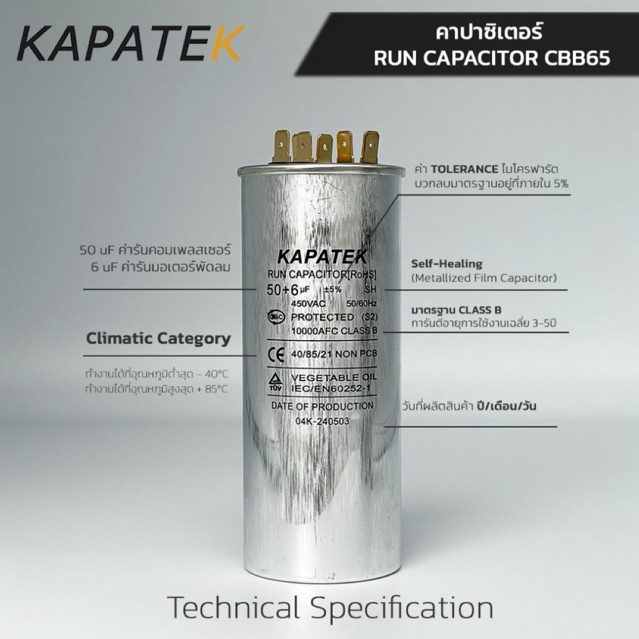 KAPATEK แคปรัน แคปรันแอร์ คาปาซิเตอร์แอร์ 17 uF 450V 50/60Hz / Run Capacitor (CBB65) 17 ไมโคร