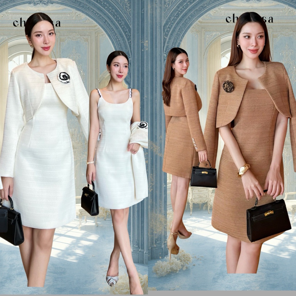 13300 ชุดเซทเรียบสวย ชุดไปงานชุเทำงานในชุดเดียว Charissa