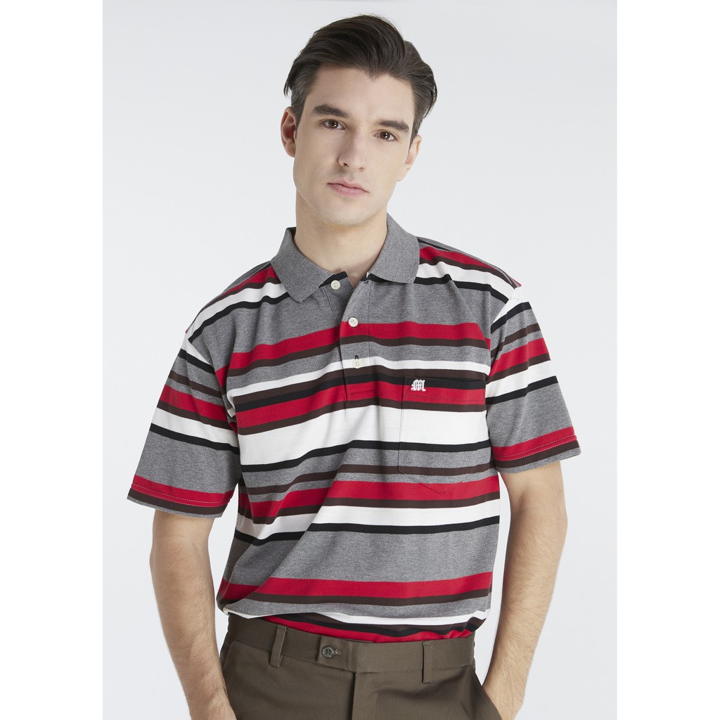 เสื้อโปโลแขนสั้นผู้ชายมีกระเป๋า Maximo Dente คอปก ลายริ้ว คลาสสิค สไตล์ยุโรป สำหรับผู้ใหญ่ รุ่น CV-47-2