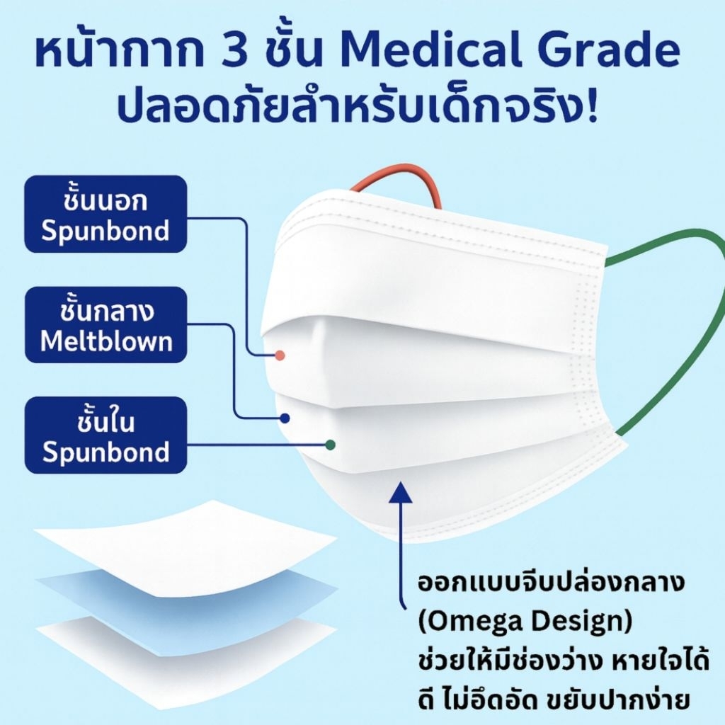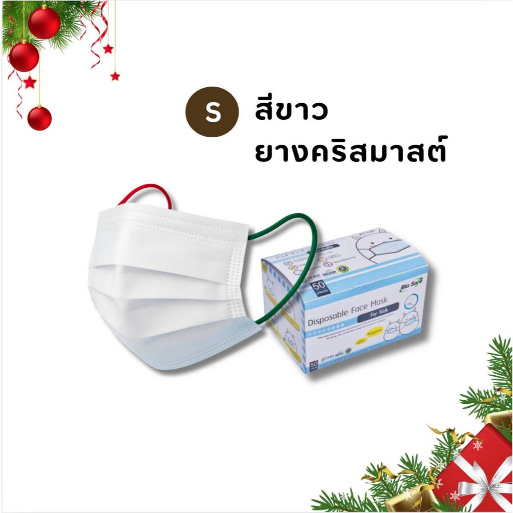 หน้ากากอนามัยเด็กไม่มีลาย 3 ชั้นทางการแพทย์ คริสมาสต์| BIO CHRISTMAS ป้องกัน PM2.5 เชื้อโรค Size S M 50 ชิ้น BioSafe