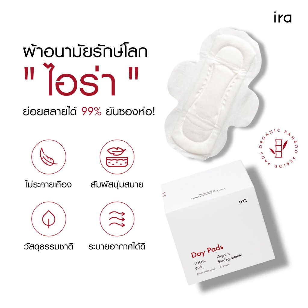 ira concept: Day Pads 24cm / ผ้าอนามัยกลางวัน ออร์แกนิคและย่อยสลายได้