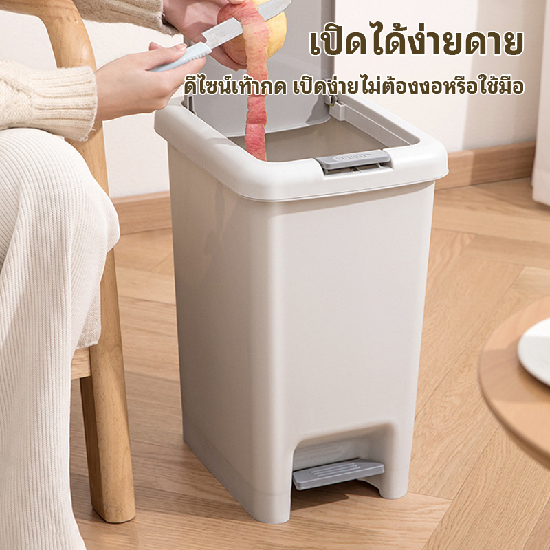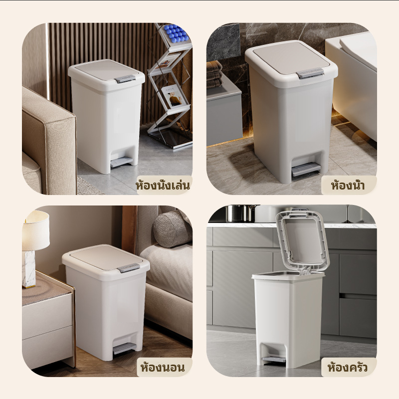 ถังขยะใช้เท้าเปิด ถังขยะพลาสติก ถังพลาสติกมีฝาปิด ถังขยะกันน้ำ ถังขยะแข็งแรงทนทาน ถังขยะมินิมอลพลาสติกทรงสี่เหลี่ยม