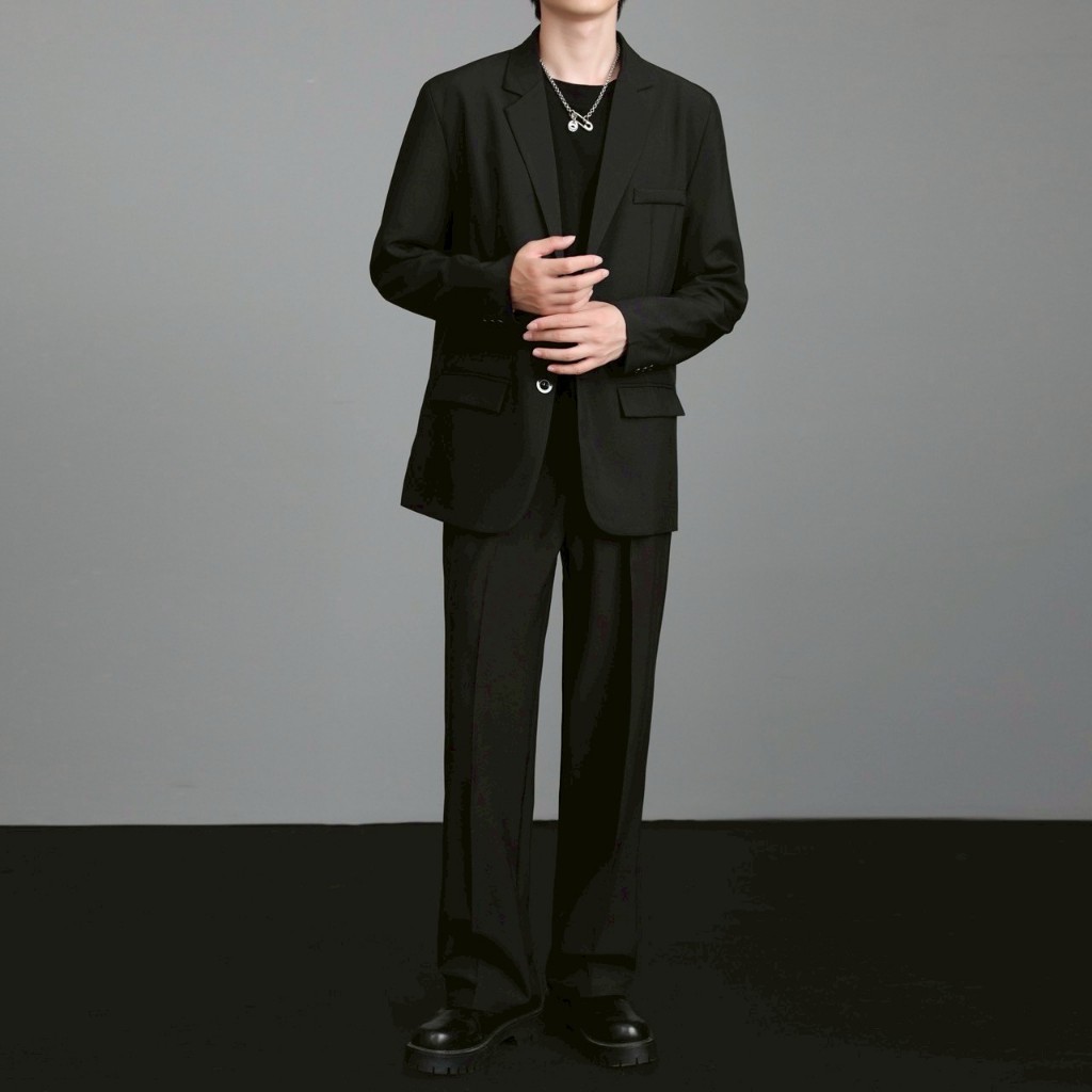SUIT-M-03🍉(ขายยกเซ็ต) สูทผู้ชายทรงหลวม เซ็ตสูทแฟชั่น ใส่ทำงาน ทรงสวยผ้านิ่มใส่สบาย สีพื้น สไตล์เกาหลี เสื้อ+กางเกง🍉