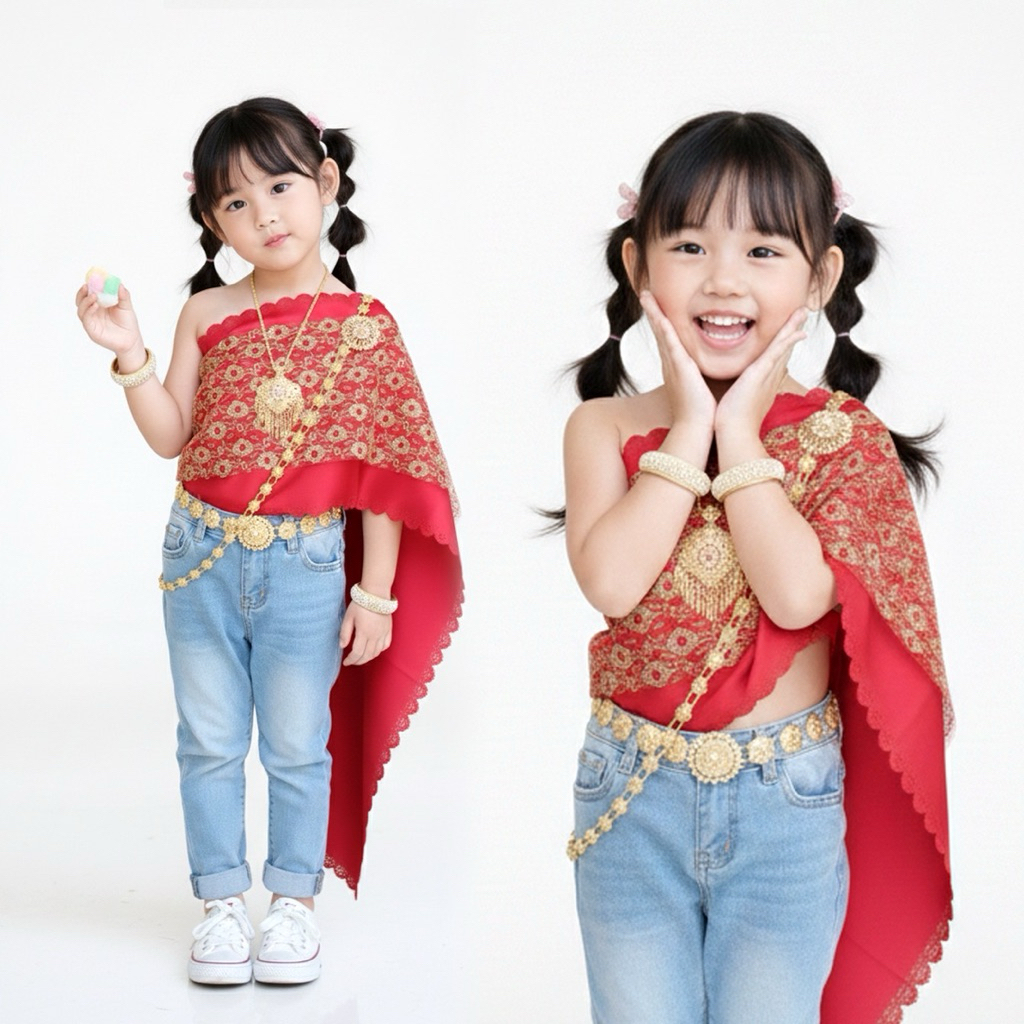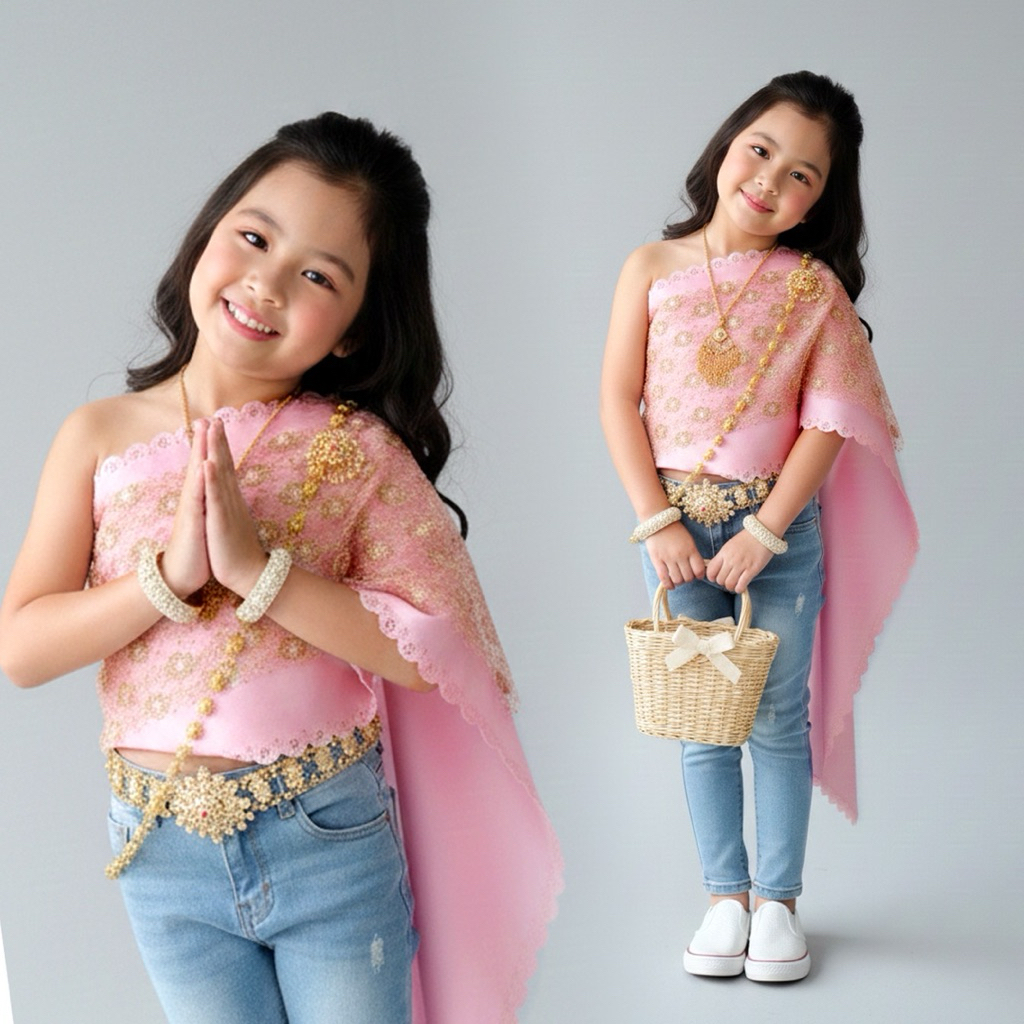 BankokCity บางกอกซิตี้ สไบใส่ยีนส์ ชุดไทยเด็ก ชุดไทย ✅พร้อมส่ง 2-15 ขวบ ชุดเด็กผู้หญิง ชุดเด็กผู้ชาย