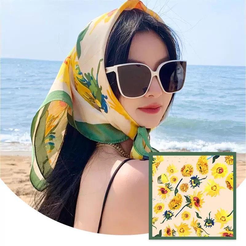 Halo studio พร้อมส่ง🔥 ผ้าพันคอไหม ชีฟอง ผ้าพันคอไหมเกาหลีสไตล์เรโทร 70×70cm