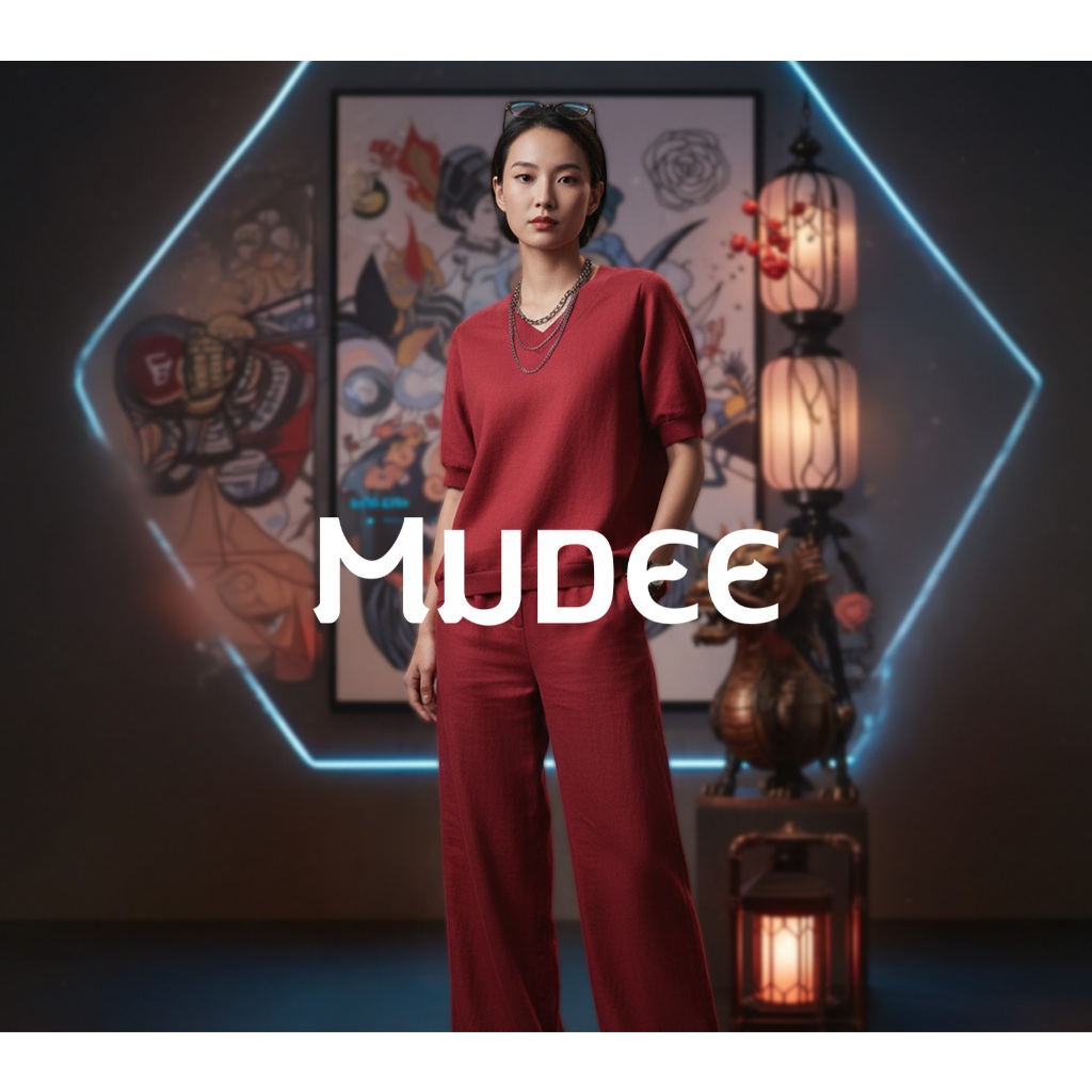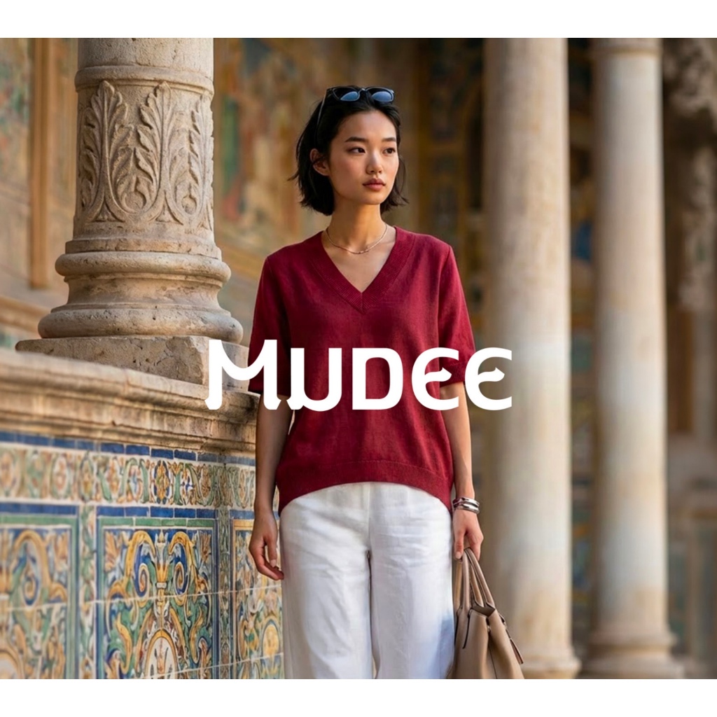 MUDEE เสื้อคอวีลินิน แต่งยางยืดเอวหน้า