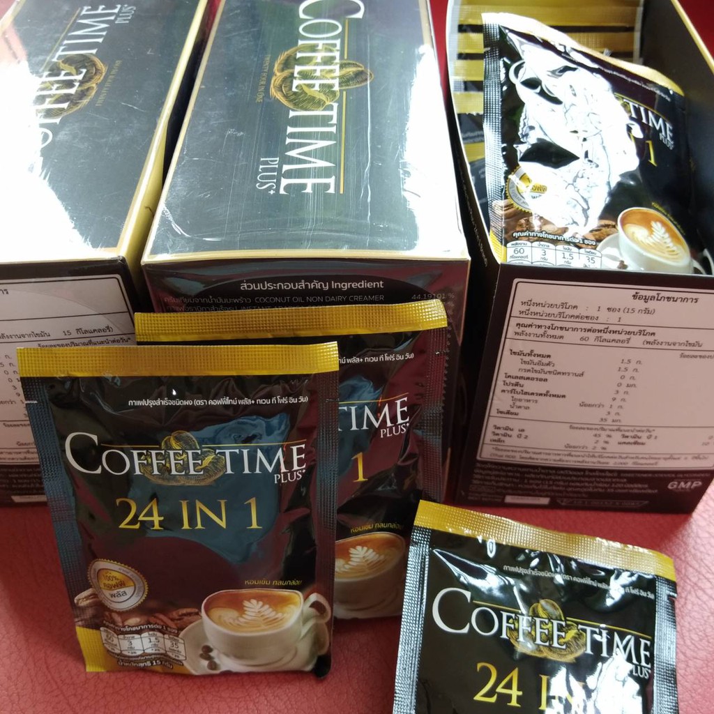 Coffee Time Plus+ คอฟฟี่ไทม์ พลัส 24 in 1 (3 กล่อง แถม 3 ซอง) กาแฟปรุงสำเร็จ 24 ชนิด พรีเมียม หอมเข้มเต็มอารมณ์มอคค่า