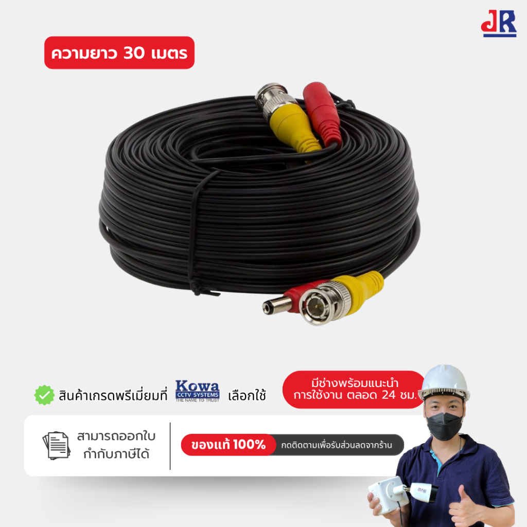 สายกล้องวงจรปิด 20 30 เมตร พร้อมหัว BNC+DC สายสำเร็จรูป ใช้งานได้ทันที