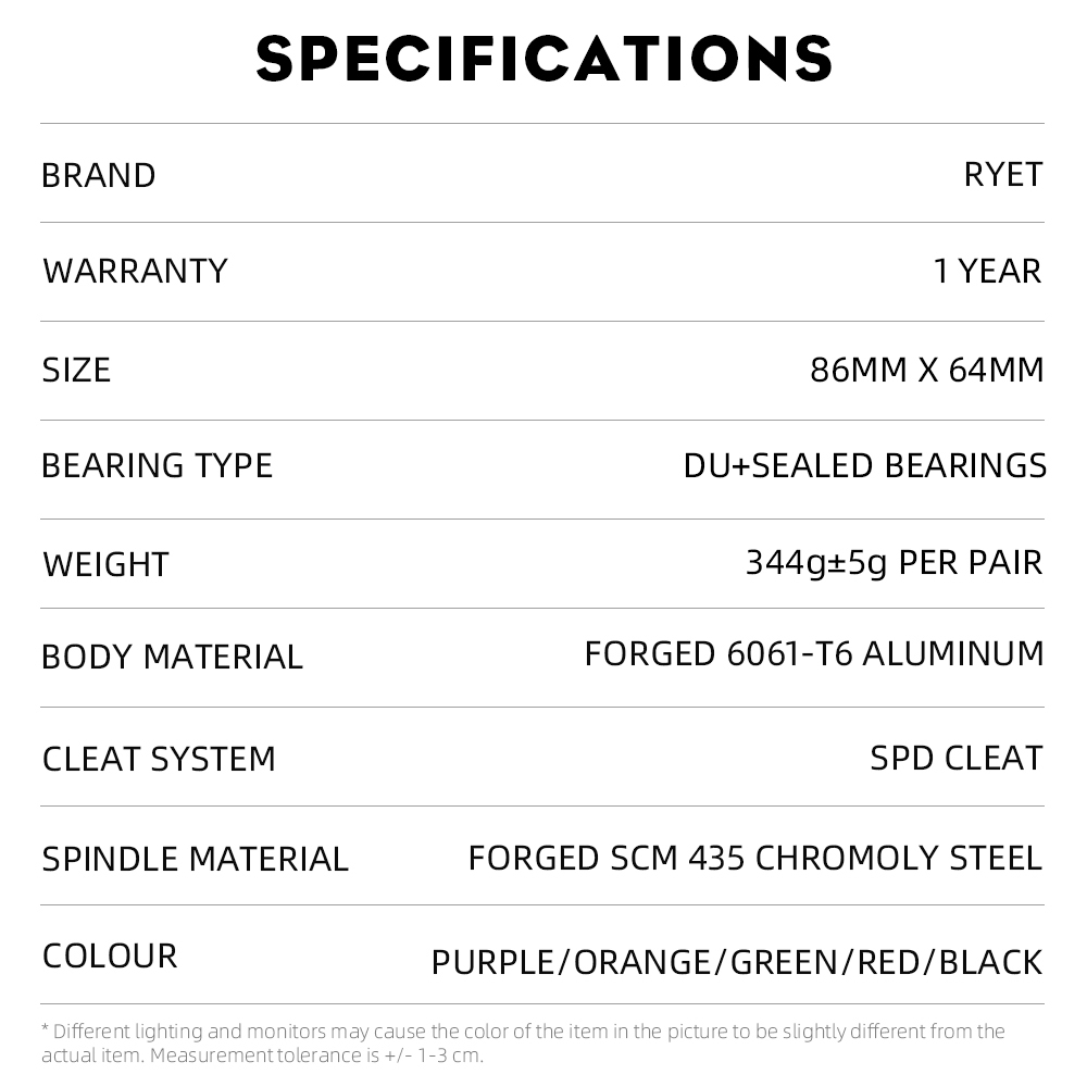 RYET MTB SPD Clipless Pedals ระบบทะยอยเข้าแน่นอนสองด้าน อุปกรณ์สำหรับจักรยานขับทางภูเขา