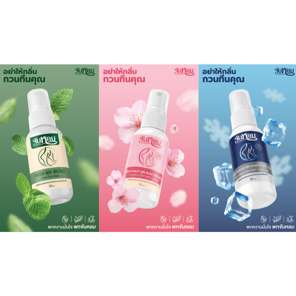 JUNHOM สเปรย์ระงับกลิ่นเท้า (คละสูตร) 2 แถม 1 สเปรย์ระงับกลิ่นเท้า จันหอม ฟุต สเปรย์