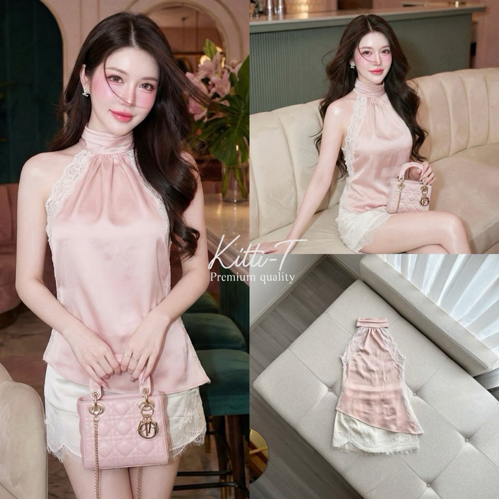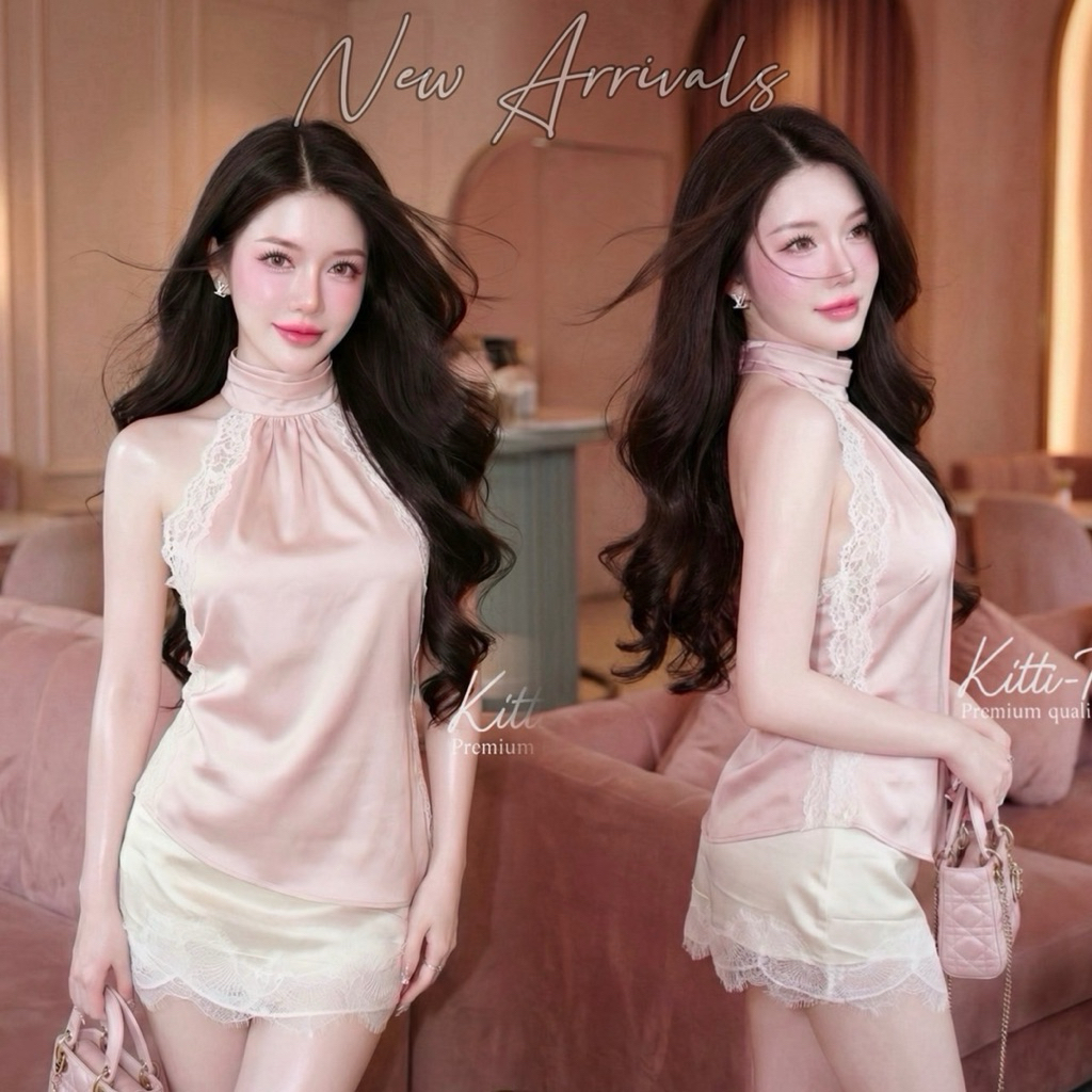 เซ็ต 2 ชิ้น เสื้อ+กระโปรง ผ้าซาติน ใส่ออกงาน/เที่ยว พร้อมส่ง”