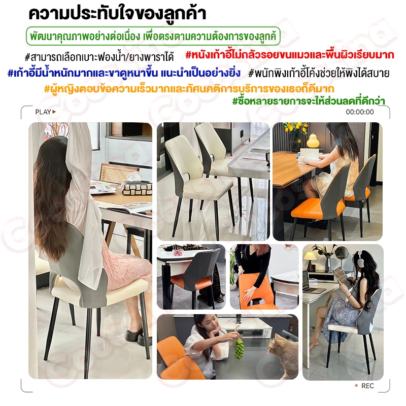 COS💥แมวข่วนผิวหนัง💥เก้าอี้กินข้าว เบาะหนัง ขาเหล็กหนา สไตล์อิตาลี แบริ่ง600KG Dining Chair