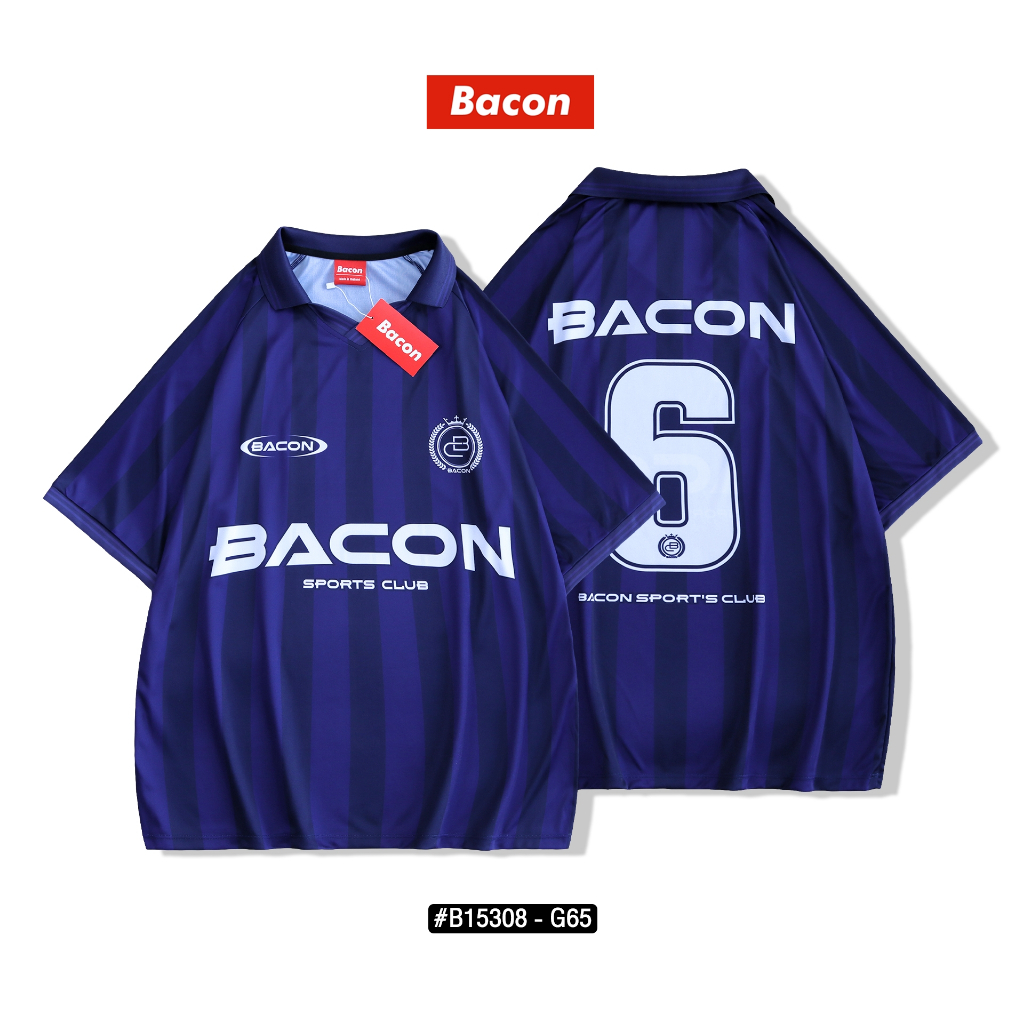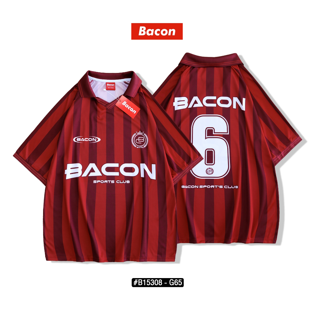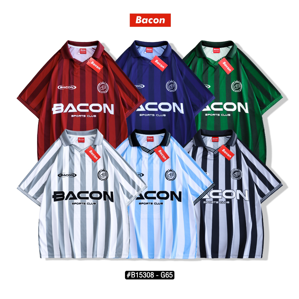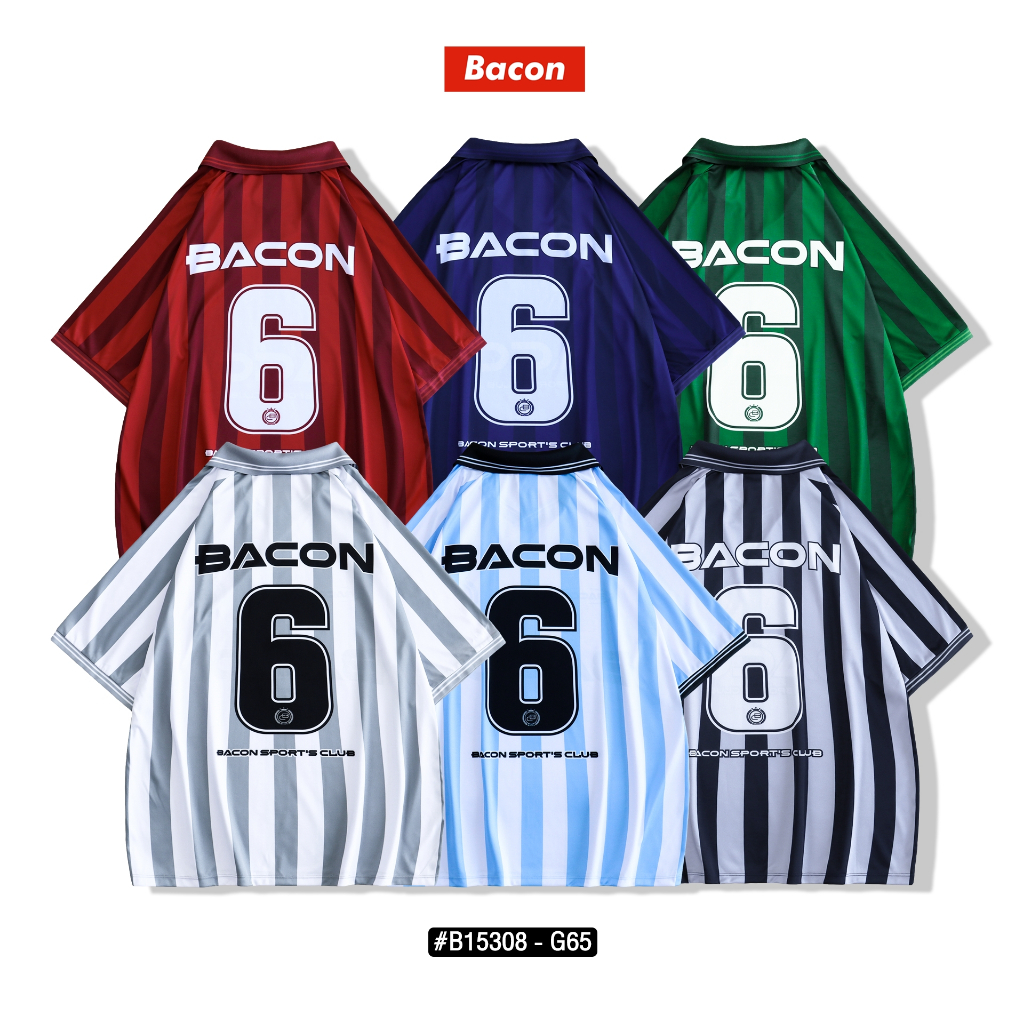 Bacon 6 เสื้อ Jersey Oversize ลายทาง พิมพ์ลายทั้งตัว ดีเทลคอปก ใส่สบาย ผลิตและจัดส่งในประเทศไทย