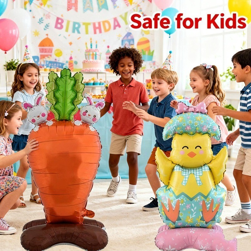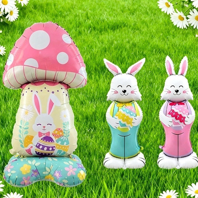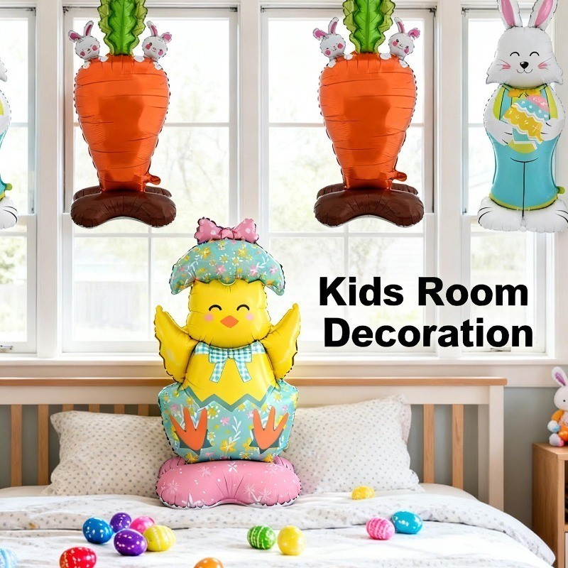 [HGB]บอลลูนกระต่ายฟิล์มอลูมิเนียม 2 ชิ้น - ลูกโป่งยืนอีสเตอร์ - แครอท, ไก่, รูปแบบกระต่าย - อุปกรณ์ตกแต่งงานปาร์ตี้ที่บ้าน