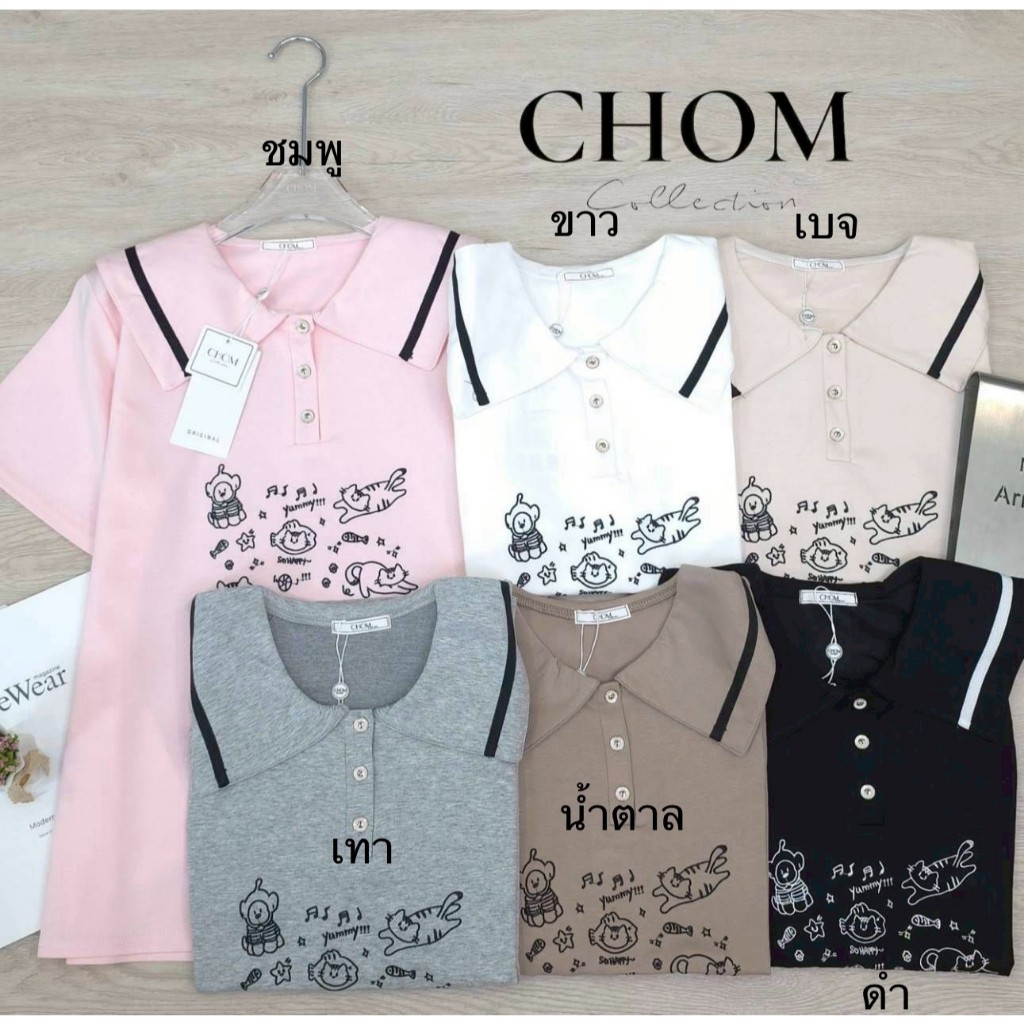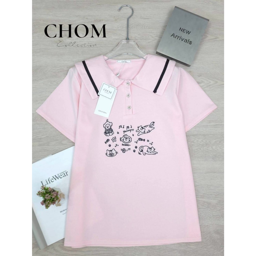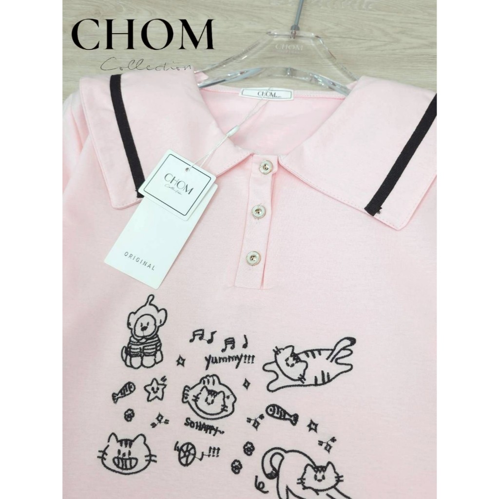 ป้าย CHOM เสื้อผ้ายืด (นาโน) พิมพ์ลายแมวดนตรี อก 42 นิ้ว ยาว 24 นิ้ว