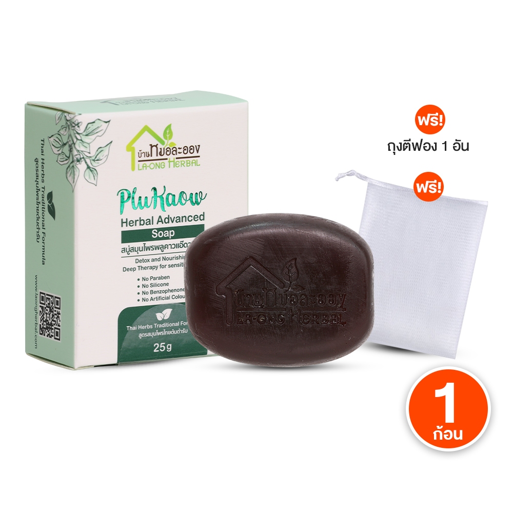[พร้อมส่ง] บ้านหมอละออง สบู่สมุนไพรพลูคาวแอ๊ดวานซ์ สูตรธรรมชาติ 1 ก้อน แถมฟรีถุงตีฟอง
