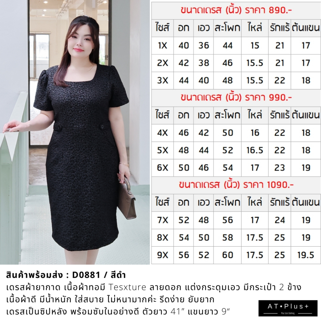 D0881 : เดรส อก 44, 52 นิ้ว - เสื้อผ้าสาวอวบ