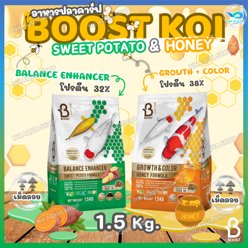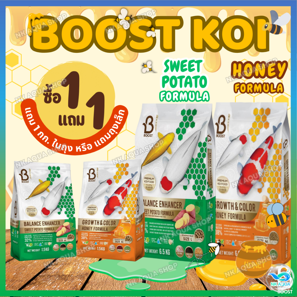 📌ซื้อ 1แถม1✌️ทั้ง2สูตร🍠มันหวาน🍯น้ำผึ้ง✌️อาหารปลาคาร์ฟ BOOST KOI สูตรน้ำผึ้ง🍯เร่งโต เร่งสีและสูตรมันหวาน บาลานซ์สมดุลปลา💪