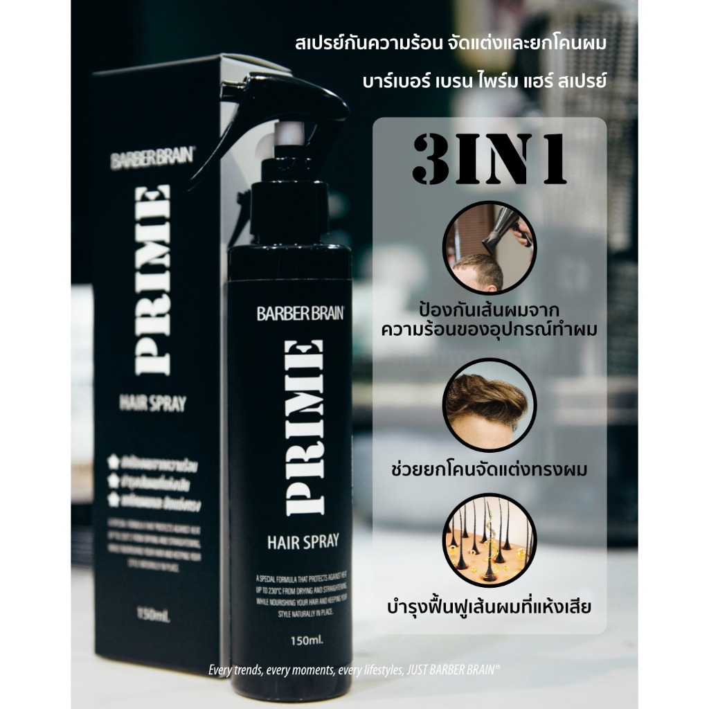 บาร์เบอร์ เบรน สเปรย์ 3 in 1 บำรุงผม ยกโคน ป้องกันความร้อน Barber Brain Prime Hair Spray 150 ml