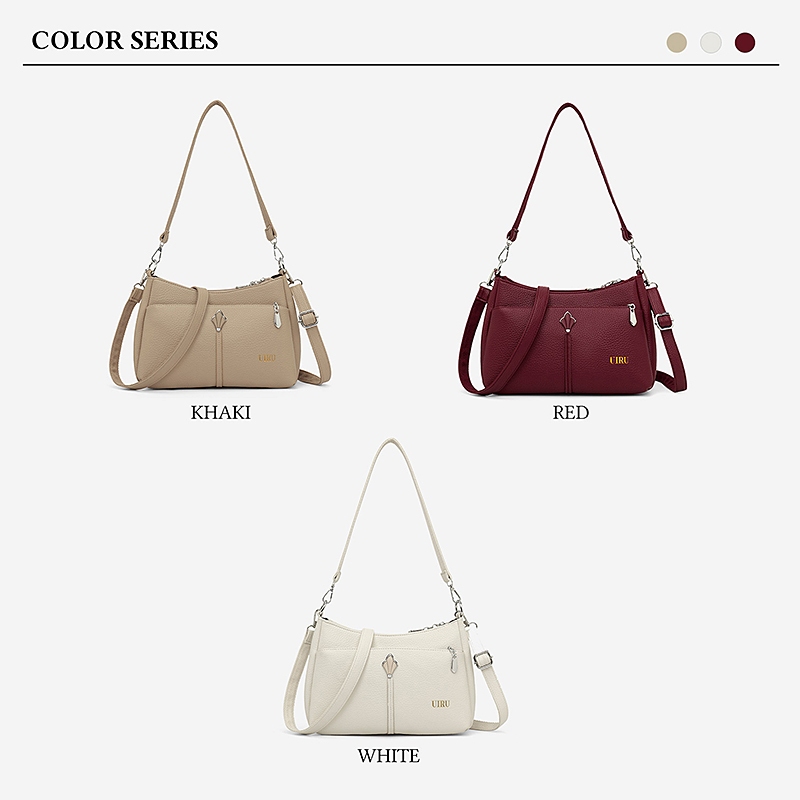 UIRU กระเป๋าสะพายไหล่ข้างผู้หญิง หนังPU ทนต่อการขีดข่วน มีซองหลังซิป ปรับสายอัจฉริยะ เหมาะใช้งานประจำวัน ติดเที่ยวสั้น