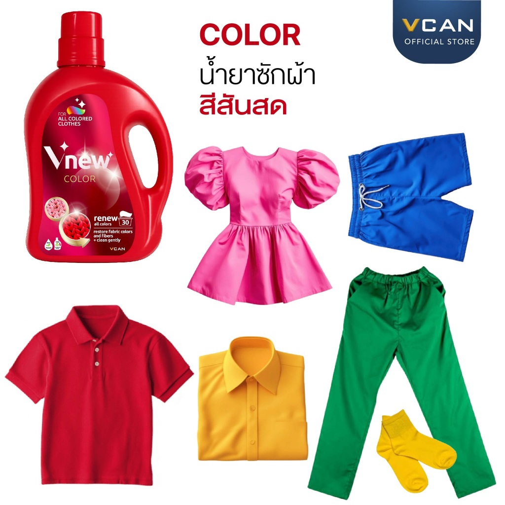 Vnew Color น้ำยาซักผ้าสำหรับผ้าสี ฟื้นคืนสีผ้าและซ่อมแซมเส้นใย 1.5 ลิตร x 6