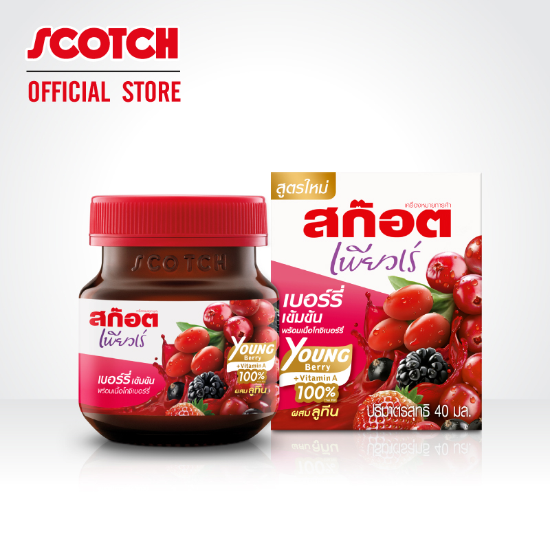 Scotch สก๊อตกระเช้า PB สก๊อตเบอร์รี่สกัดเข้มข้น สูตรใหม่เพิ่มยังเบอร์รี่ 40 มล จำนวน 10 ขวด (4 กระเช้า)