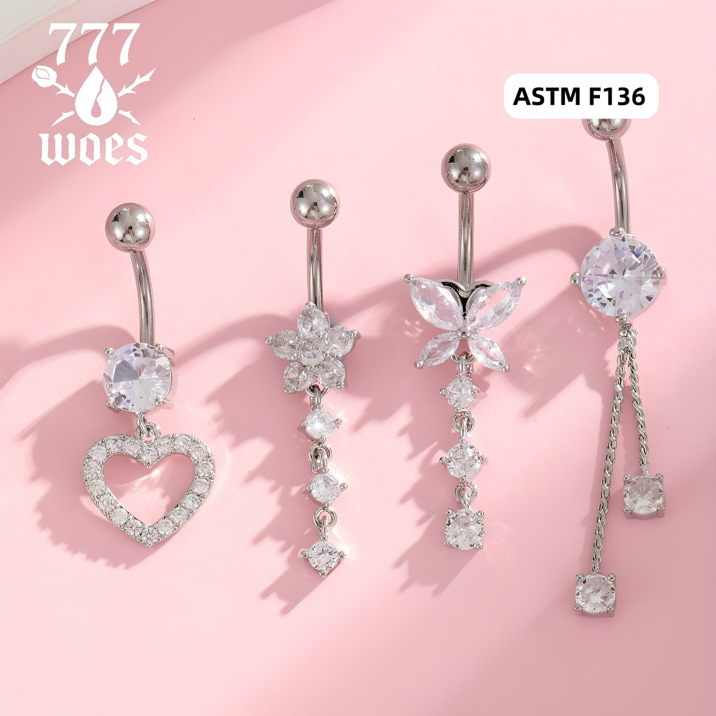 เกรดแพทย์G23ไทเทเนียมจิวสะดือห่วงสะดือลายดอกไม้หัวใจผีเสื้อเพชรCZแบบห้อยระยิบระยับมากเม็ดใหญ่แวววาว