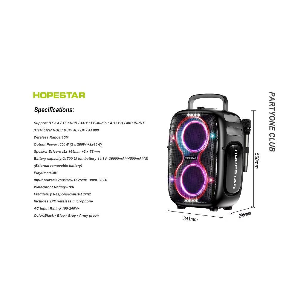 ส่งด่วน 4 ชั่วโมง HOPESTAR Partyone CLUB รับประกัน 1 ปี ลำโพงบลูทูธ 650W เสียงดีเบสแน่น ดังกระหึ่ม