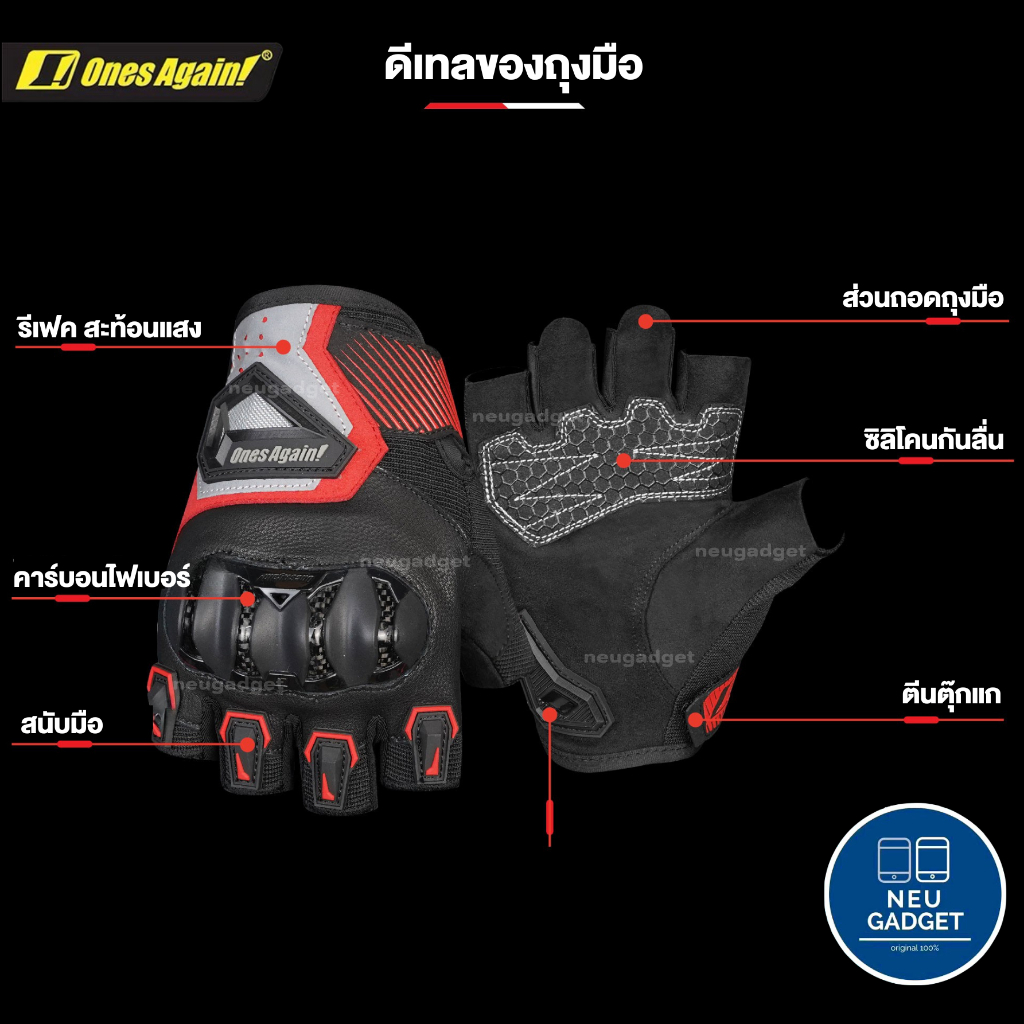 Ones Again MG26 ถุงมือ พร้อมการ์ดคาร์บอน มีแถบสะท้อนแสง ระบายอากาศ ถุงมือสำหรับขับขี่มอเตอร์ไซค์ ถุงมือบิ๊กไบค์ moto