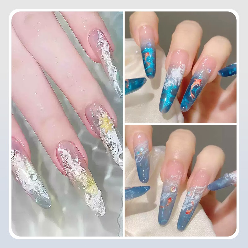 BORN PRETTY Bubble Ocean Wave กาวลูกไม้สีขาว Hollow Gradient สีเล็บเจล UV LED เคลือบเงาฤดูร้อนเล็บ Poke เคลือบเงา