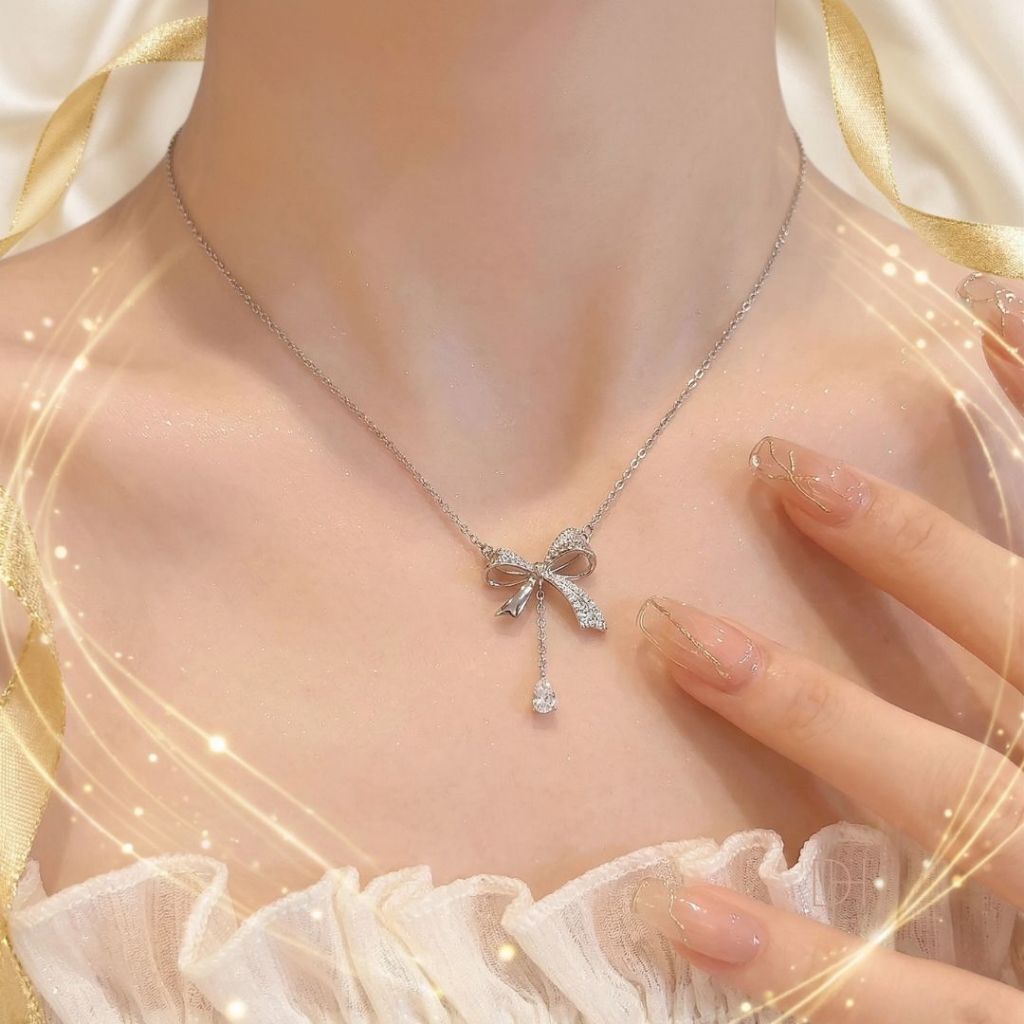 DH สร้อยคอเงิน Bow-Knot สร้อยเพชร สร้อยแฟชั่น สร้อยคอ เสริมมงคล ดีไซน์สุดชิค มีเอกลักษณ์
